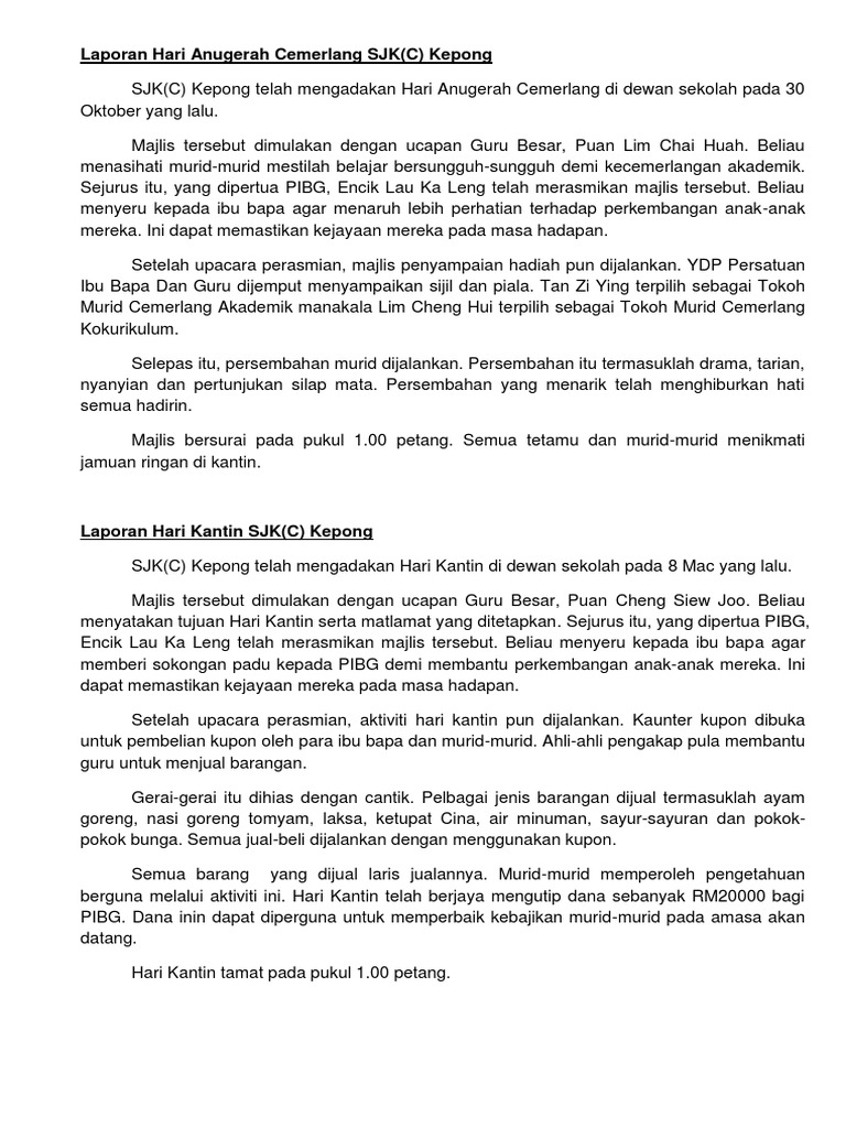Contoh Karangan Berformat Laporan Pdf